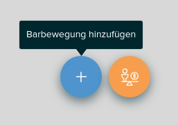 Klicken Sie dazu links im Menü auf Kassenbuch und anschließend rechts unten auf das blaue Plus (+) um eine neue Barbewegung hinzuzufügen.