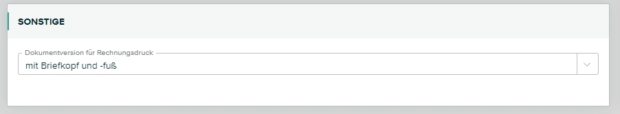 Sie haben hier die Möglichkeit einzustellen ob wir die Rechnung mit Briefkopf und Brieffuß oder ohne Briefkopf und Brieffuß als Dokumentversion für den Rechnungsdruck erstellen sollen.