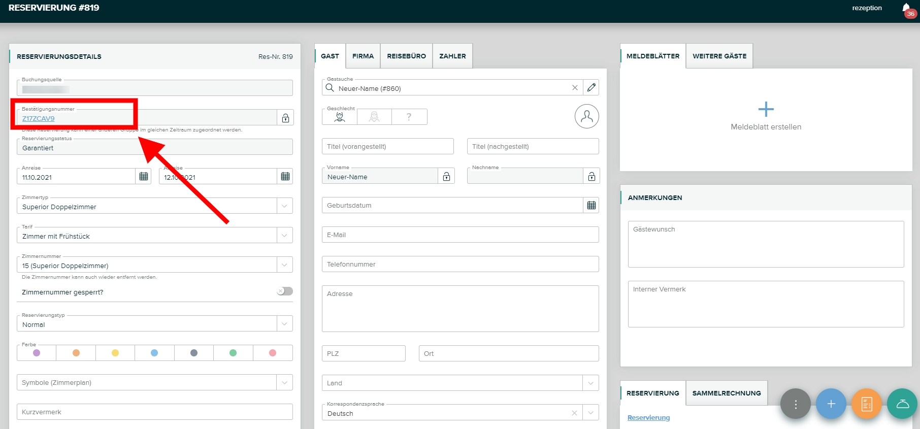 Beispiel - Nachträgliche Änderung des Gästenamens