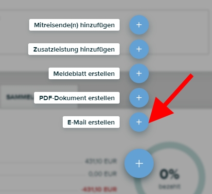 Sie können aus jeder Reservierung, Gruppenreservierung, Anfrage, Angebot oder aus einem Gästeprofil ein E-Mail versenden.
