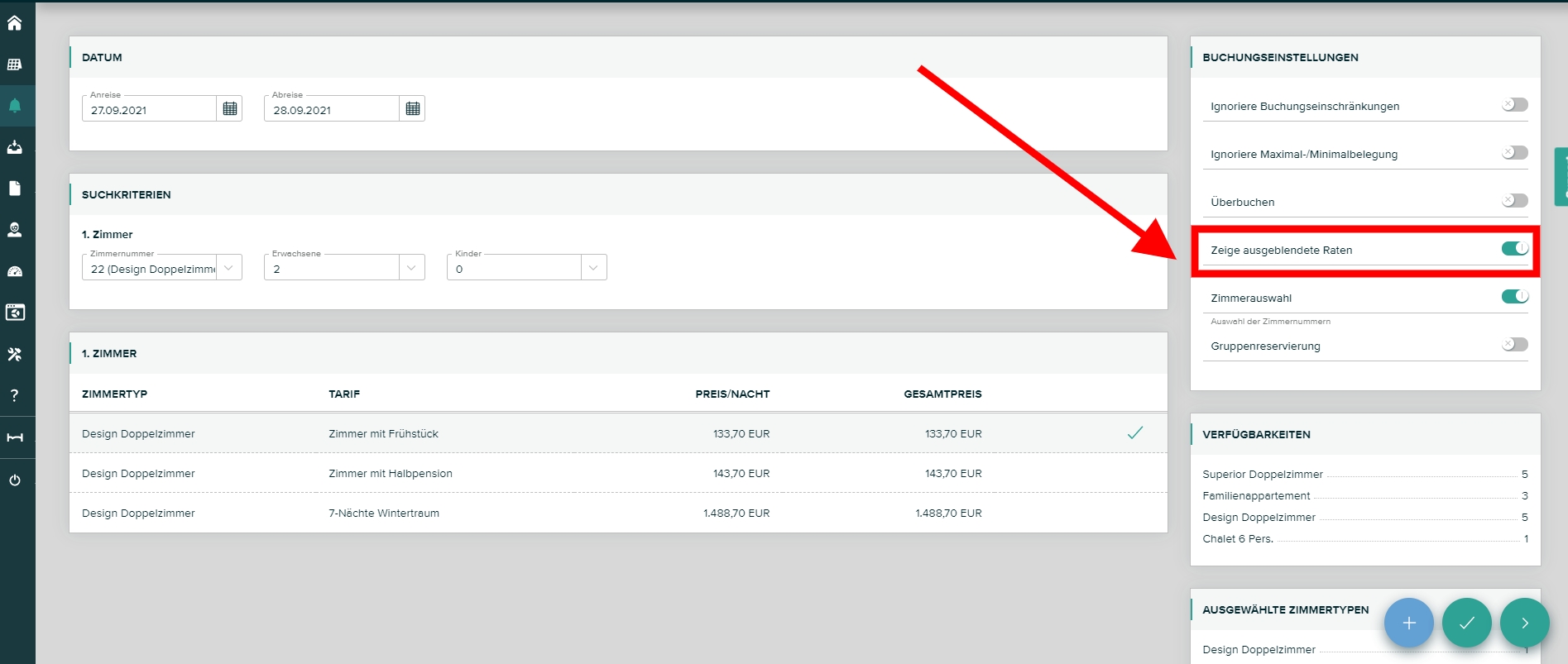 Bei der Online-Buchung werden dem Gast selbstverständlich immer alle verfügbaren Raten (auch Pauschalen) angezeigt.