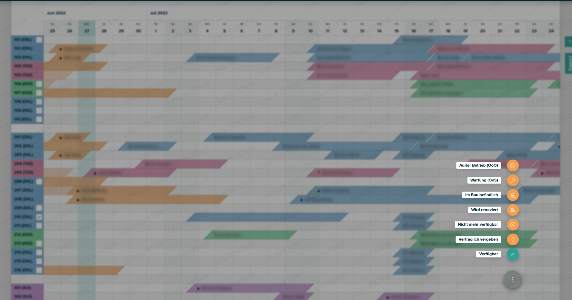 In diesem Fall können Sie einzelne Zimmer ganz einfach aus der Verfügbarkeit entfernen - öffnen Sie dazu einfach den Zimmerplan und markieren Sie den gewünschten Zeitraum. Anschließend klicken Sie rechts unten auf den grauen Knopf mit den 3 weißen Punkten.