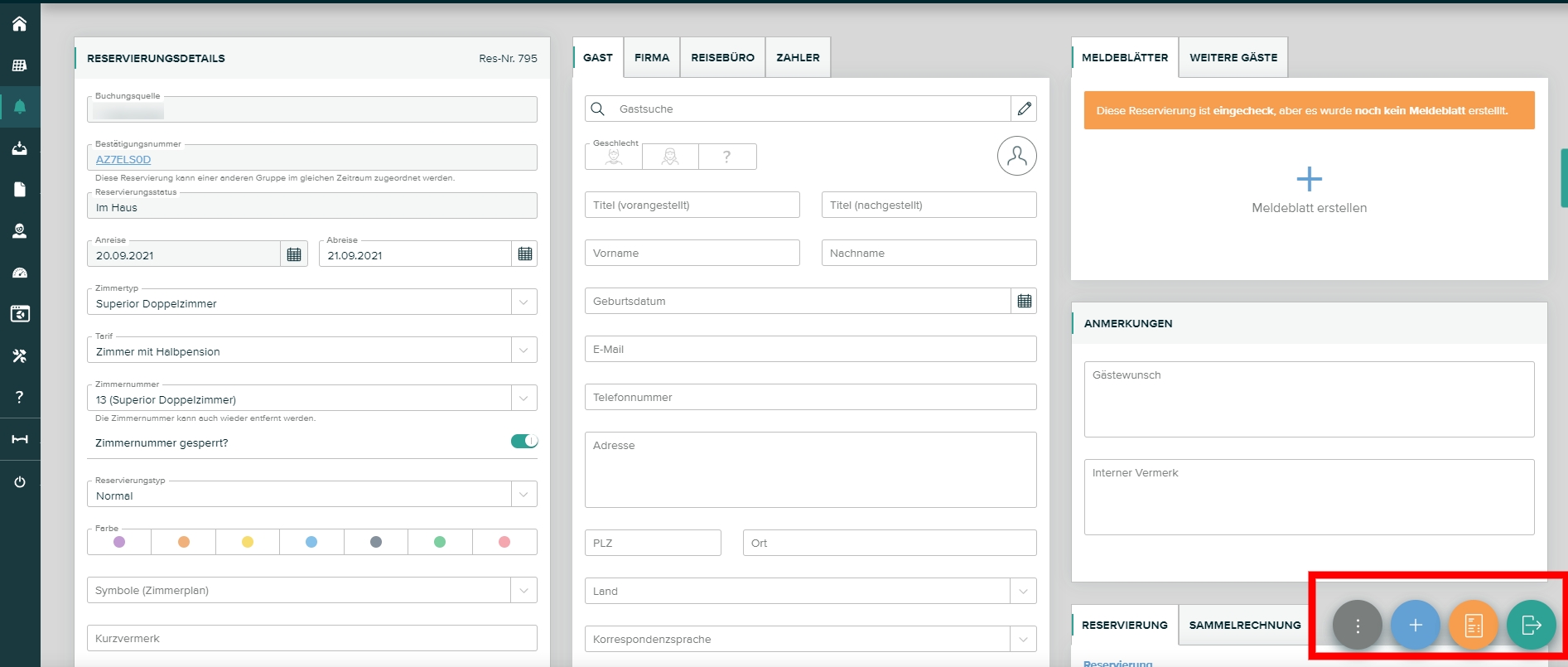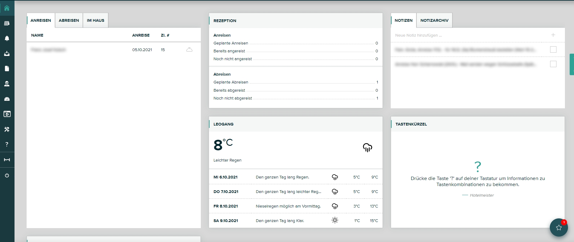 Bei eingehenden Reservierungen oder anderen wichtigen Ereignissen erhalten Sie Benachrichtigungen und können direkt mit einem Klick darauf zugreifen (das Symbol mit der Glocke befindet sich rechts oben in der Titelleiste).