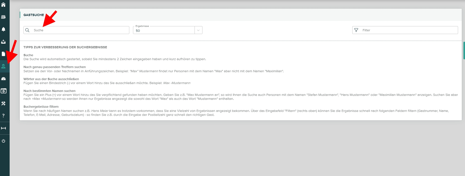 Klicken Sie im Menü auf den Punkt Gäste und suchen Sie den gewünschten Gast.
