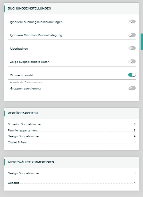Buchungseinstellungen/Verfügbarkeiten/ausgewählte Zimmertypen