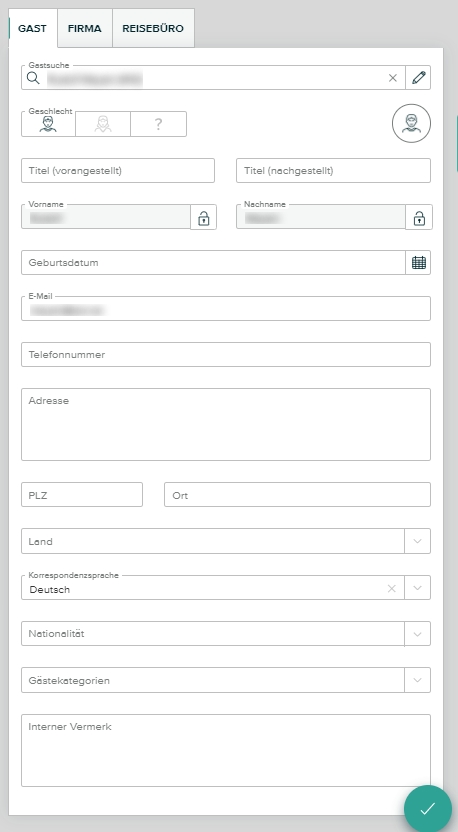 Geben Sie danach noch sämtliche Daten des Gastes die Ihnen bekannt sind ein.