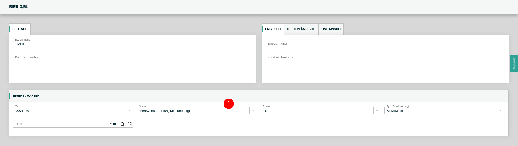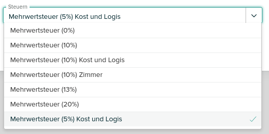 Öffnen Sie nun auf das Dropdown "Steuern" und wählen Sie den gewünschten Steuersatz aus.