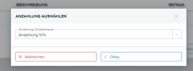 Klicken Sie nun auf den Button Anzahlung verbuchen