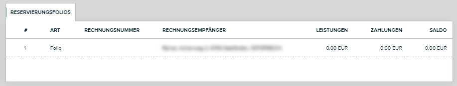 Hier können sehen Sie eine Übersicht der Reservierungsfolios. Durch Klick auf die jeweilige Zeile öffnet sich das gewünschte Folio.