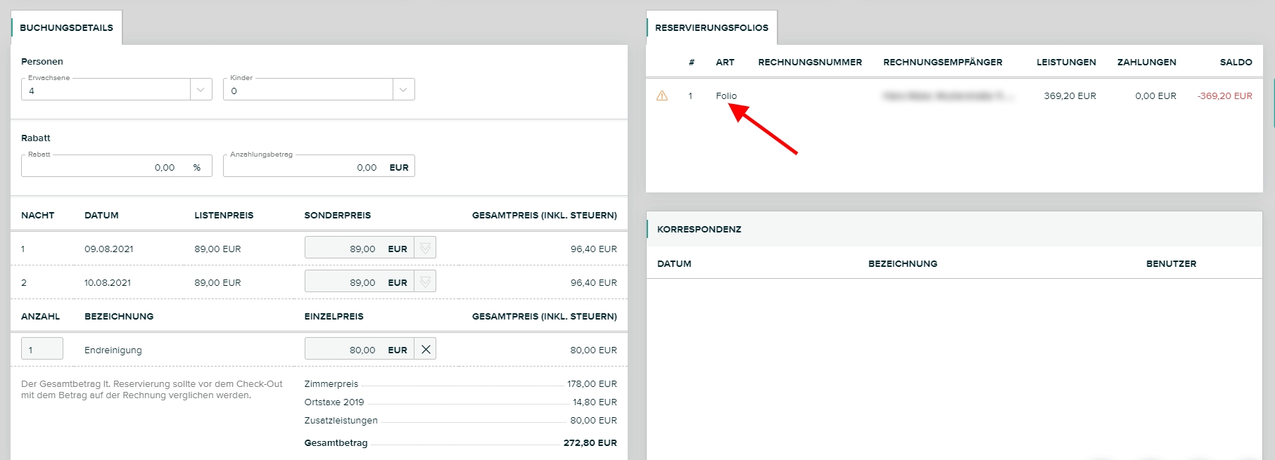 Öffnen Sie dazu das Folio mit den aufgebuchten Nächtigungen